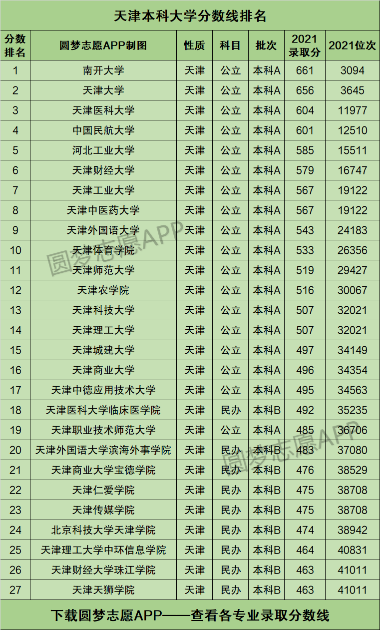 本文将为大家奉上天津市内所有的本科大学2021年的招生录取分数线排名汇总,供2022年天津市高考生查阅!