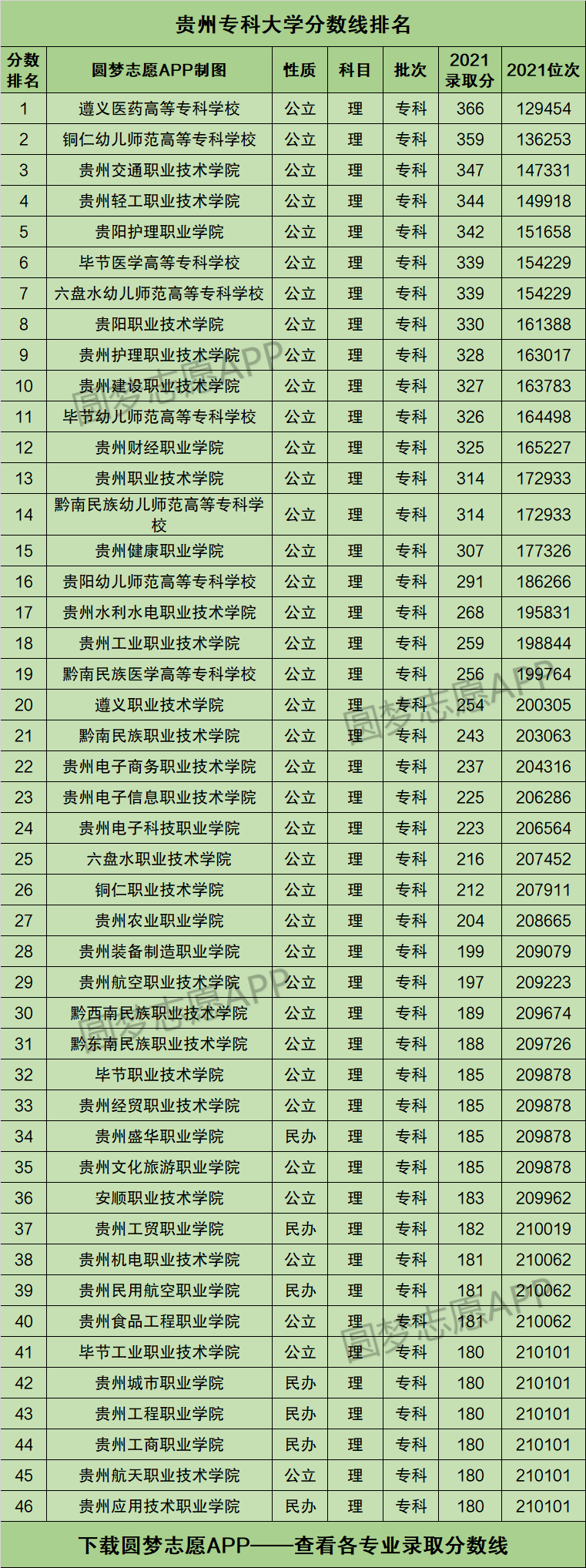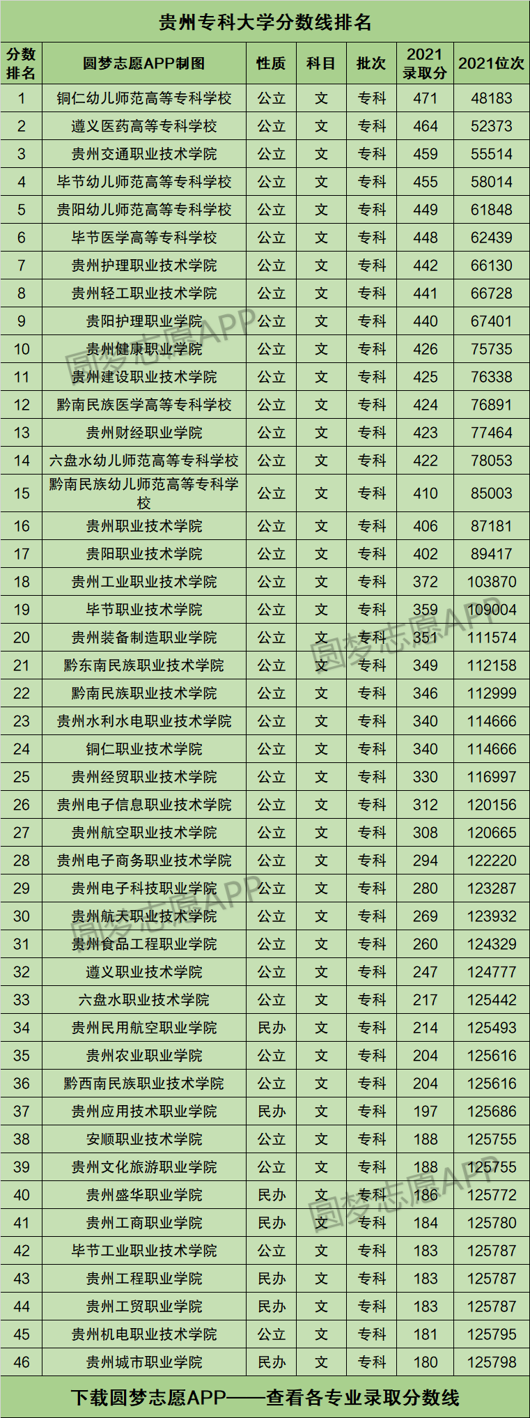 本文将为大家奉上贵州省内所有的专科大学2021年的招生录取分数线排名汇总,供2022年贵州省高考生查阅!
