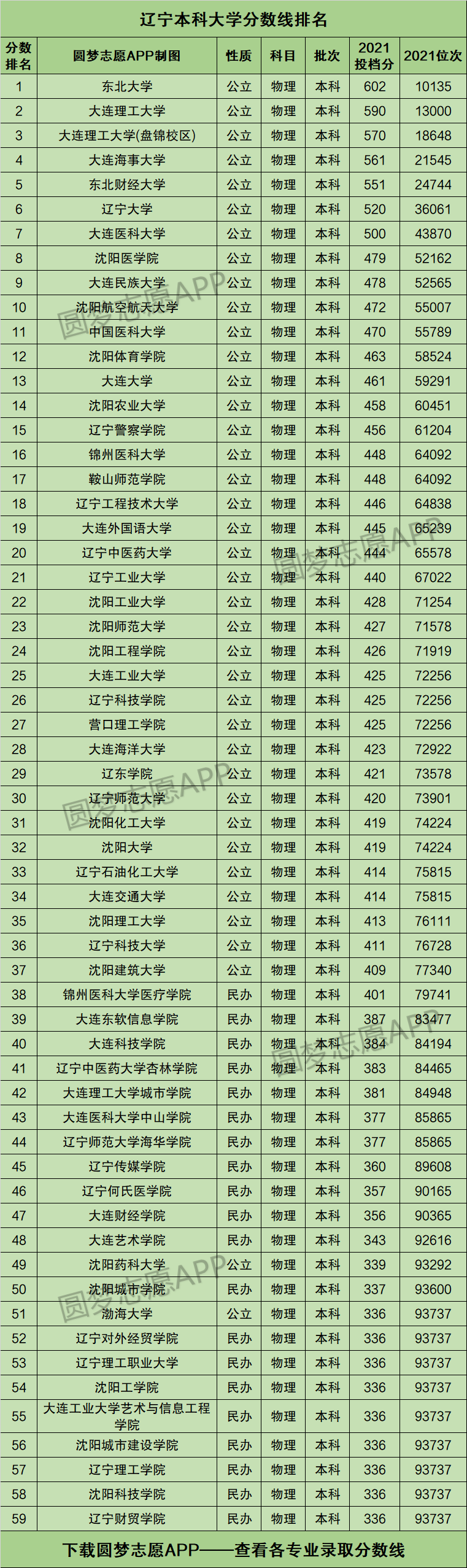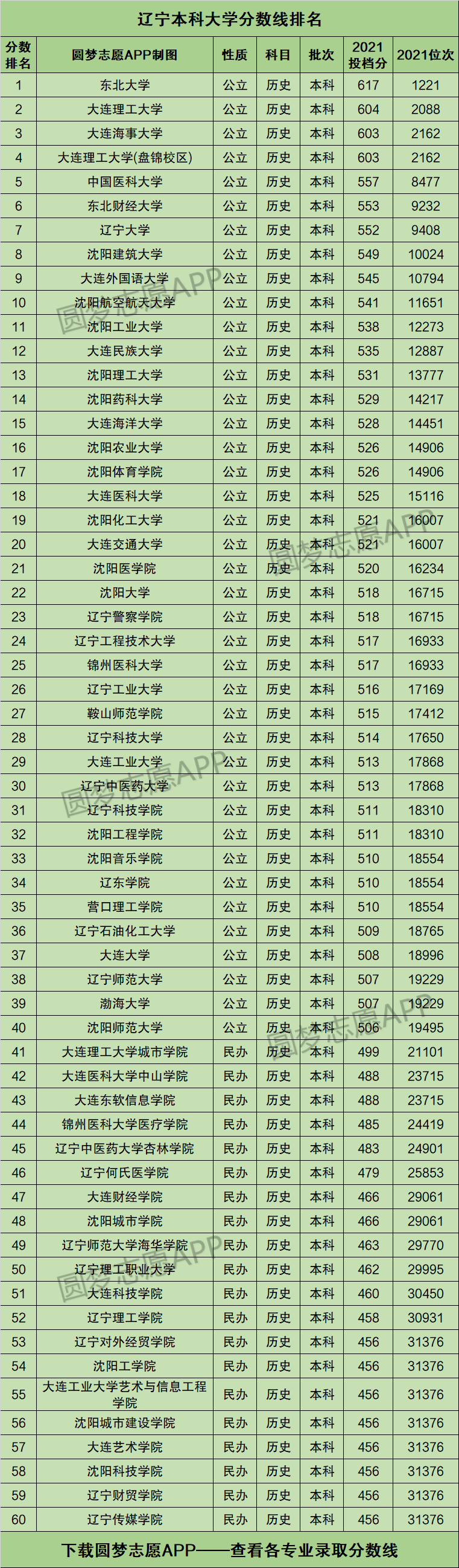 由于辽宁省内本科大学数据量较多,这里就不一一例举,您可在下文图片中查看省内全部学校在本科的录取分数线排名!