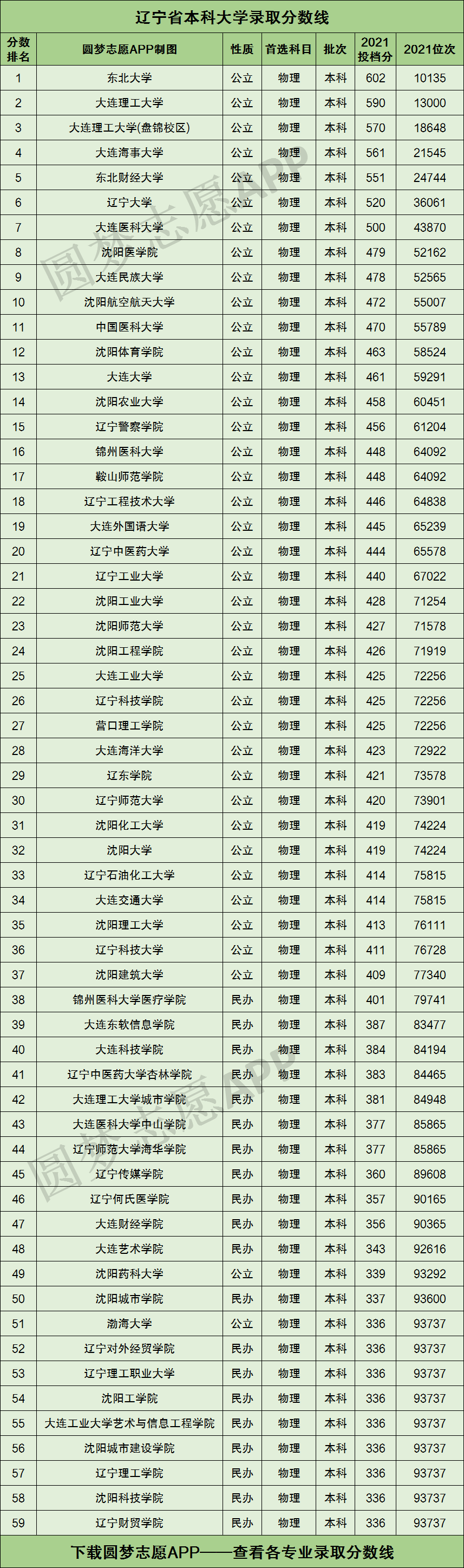 “辽宁省内的所有本科大学2021年高考录取分数线是多少分”,是2022年辽宁高考生报考大学时非常有价值的参考资料。本文将为大家奉上2021年各高校在辽宁省文理科的录取分数线排名一览表,希望能帮助辽宁省内的高考生成功拿到目标大学的录取通知书!