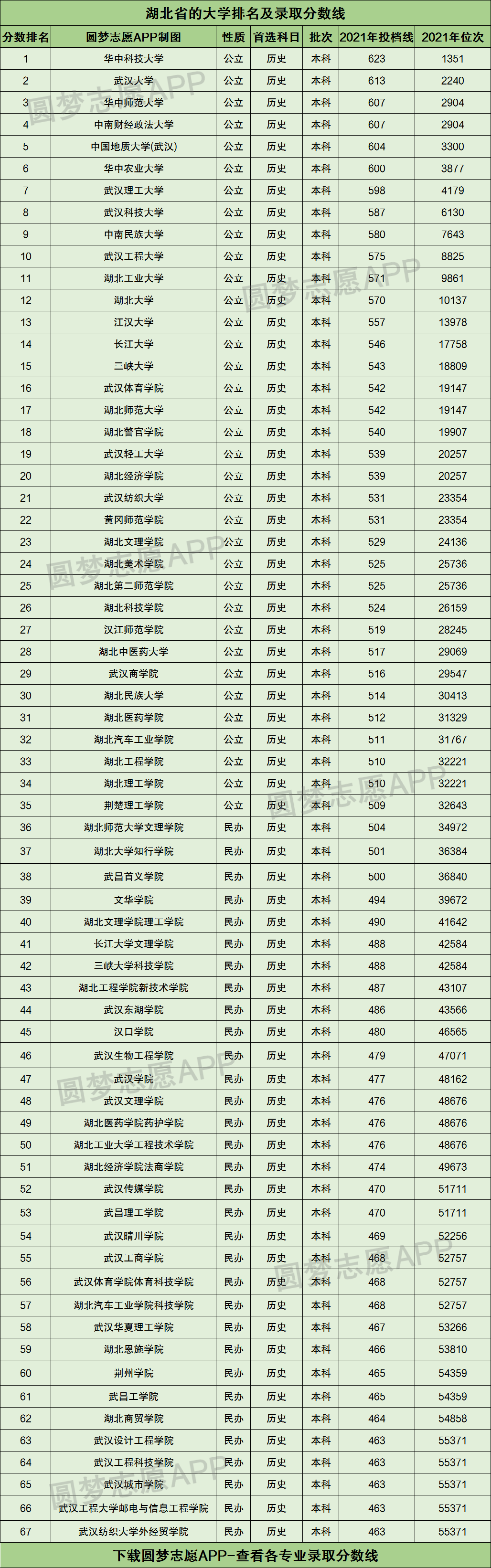 二、湖北地区的大学排名一览表及分数2021年(首选历史科目)