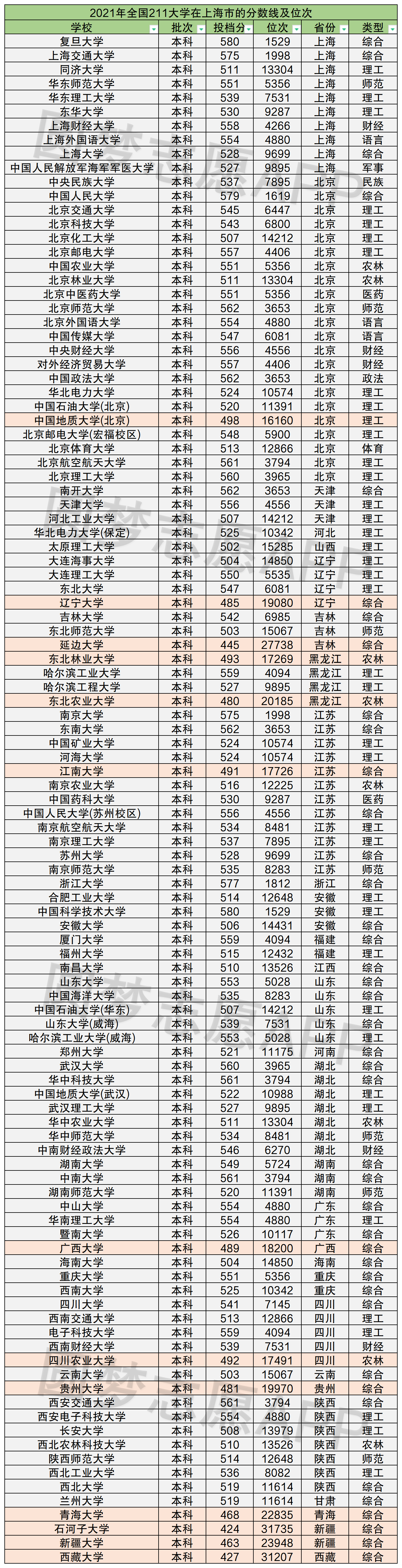 因为每所院校在不同省份的录取分数不同,这里小编就以211大学在四川、山东、以及上海的录取分数线为例,根据这三个省(市)的考试院公布的招录数据,为大家整理了全国211大学2021年的分数线及位次,供各位考生/家长参考。