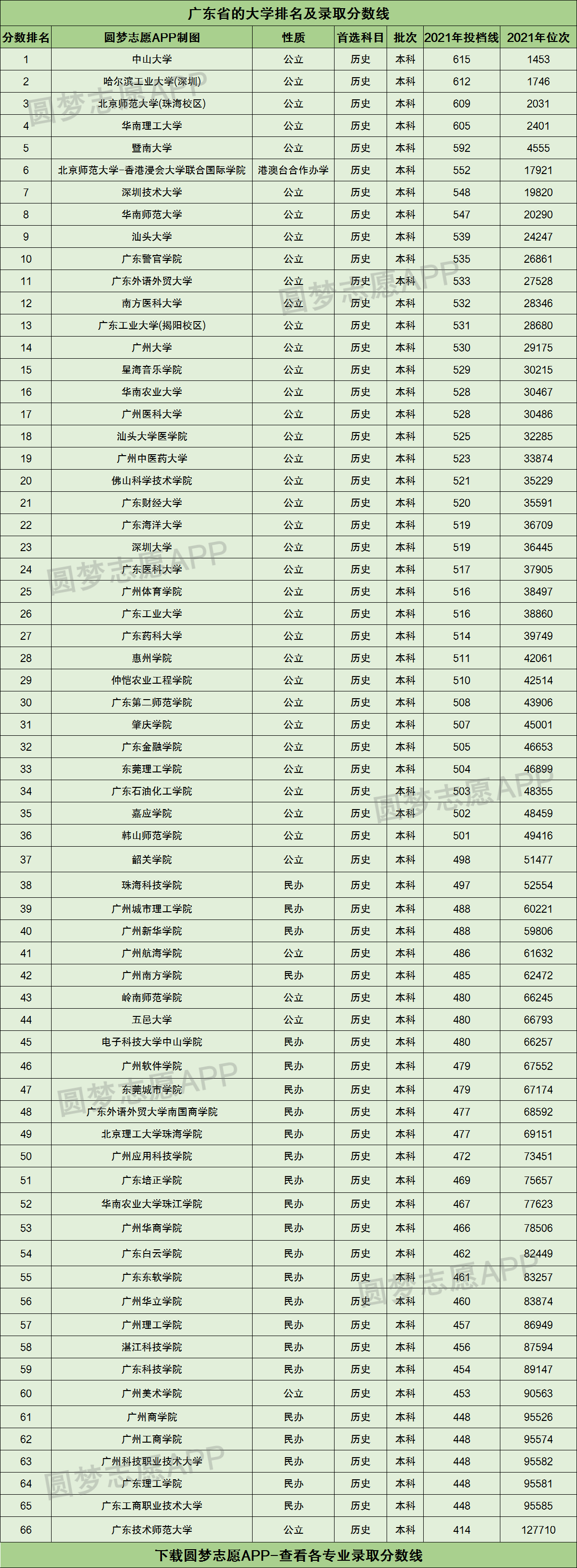 二、广东地区的大学排名一览表及分数2021年(首选历史科目)
