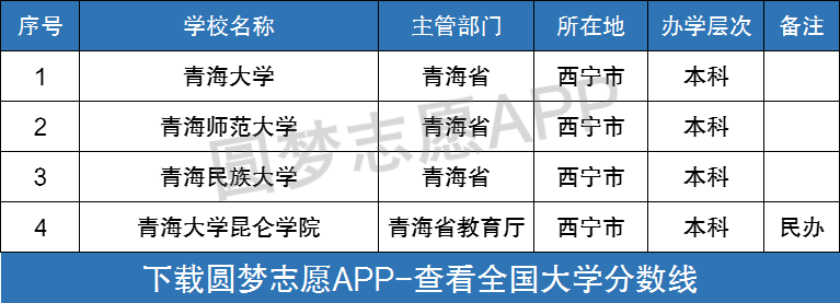 下图为青海省所有本科大学名单一览表,供大家查阅: