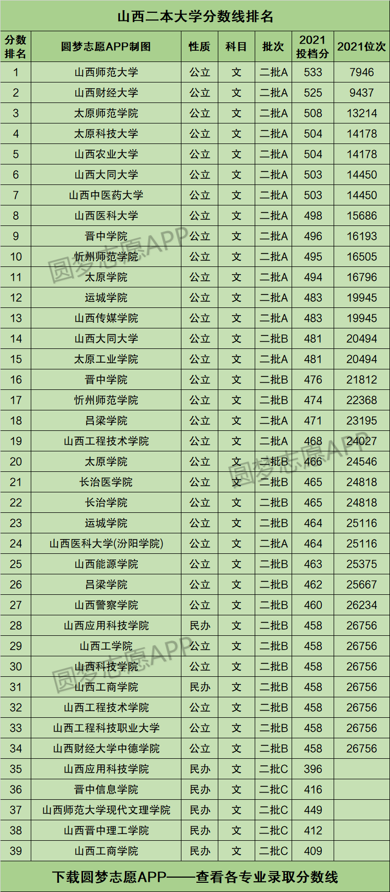 本文将为大家奉上山西省内所有的二本大学2021年的招生录取分数线排名汇总,供2022年山西省高考生查阅!