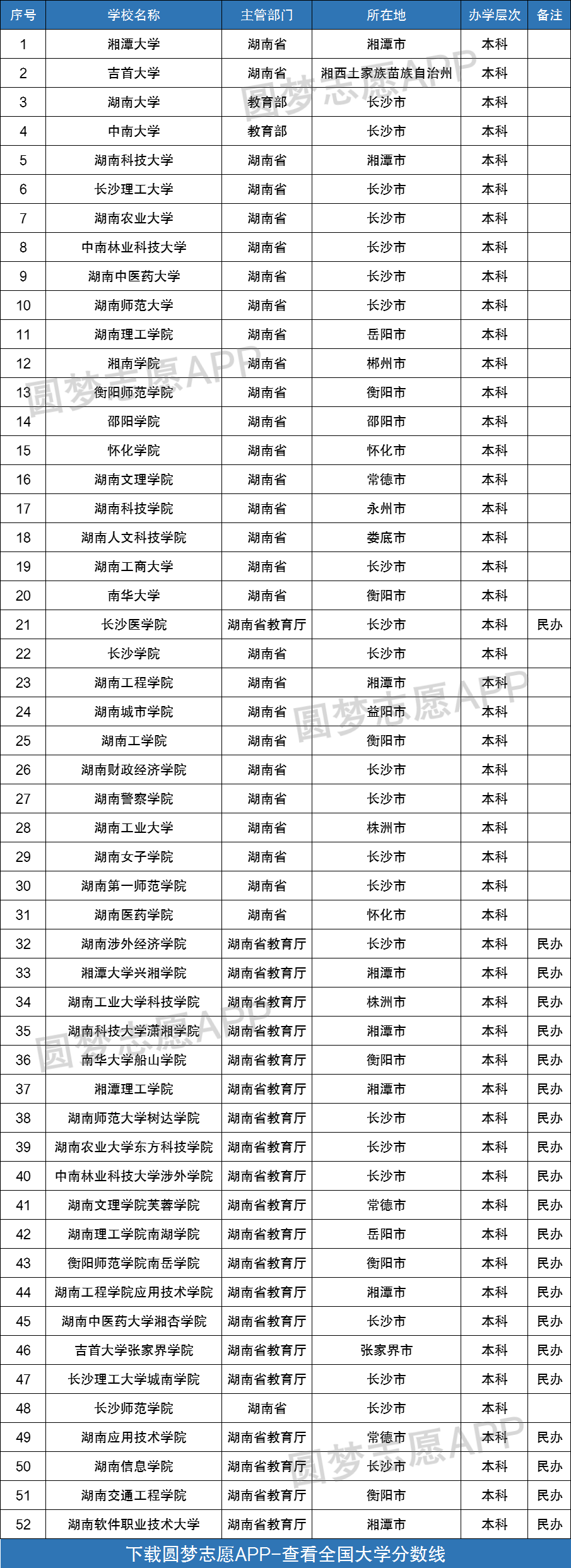 下图为湖南省所有本科大学名单一览表,供大家查阅: