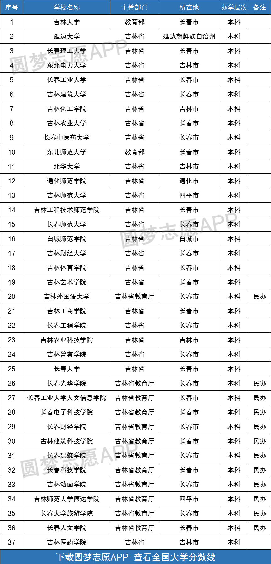 下图为吉林省所有本科大学名单一览表,供大家查阅: