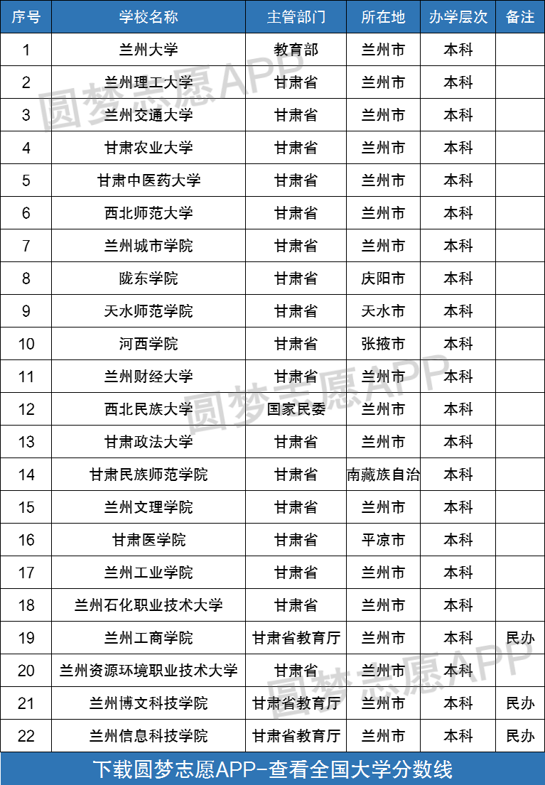 下图为甘肃省所有本科大学名单一览表,供大家查阅: