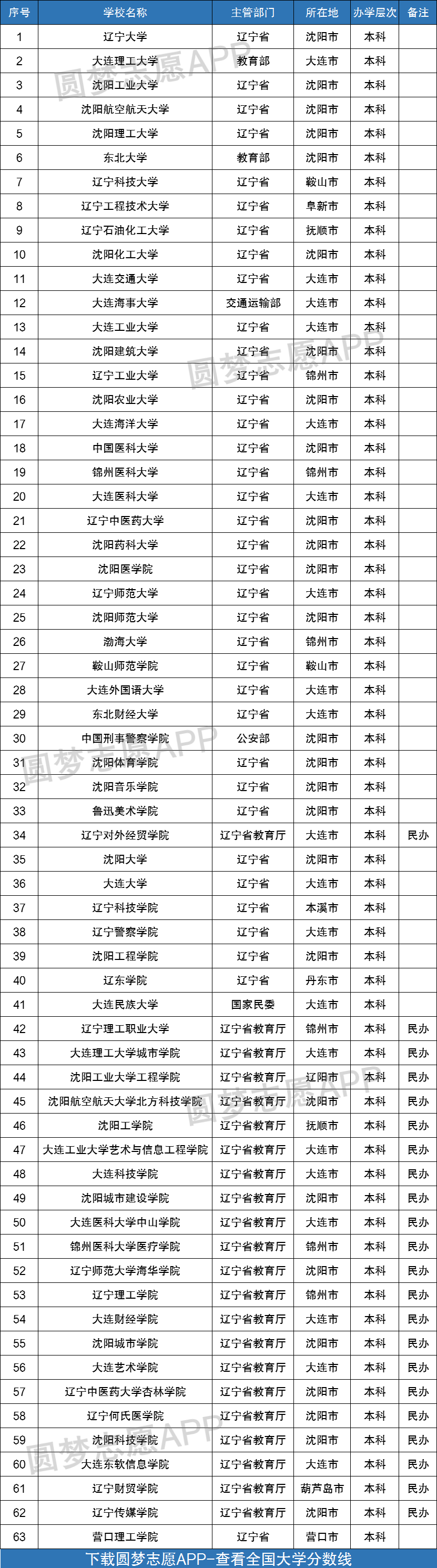下图为辽宁省所有本科大学名单一览表,供大家查阅: