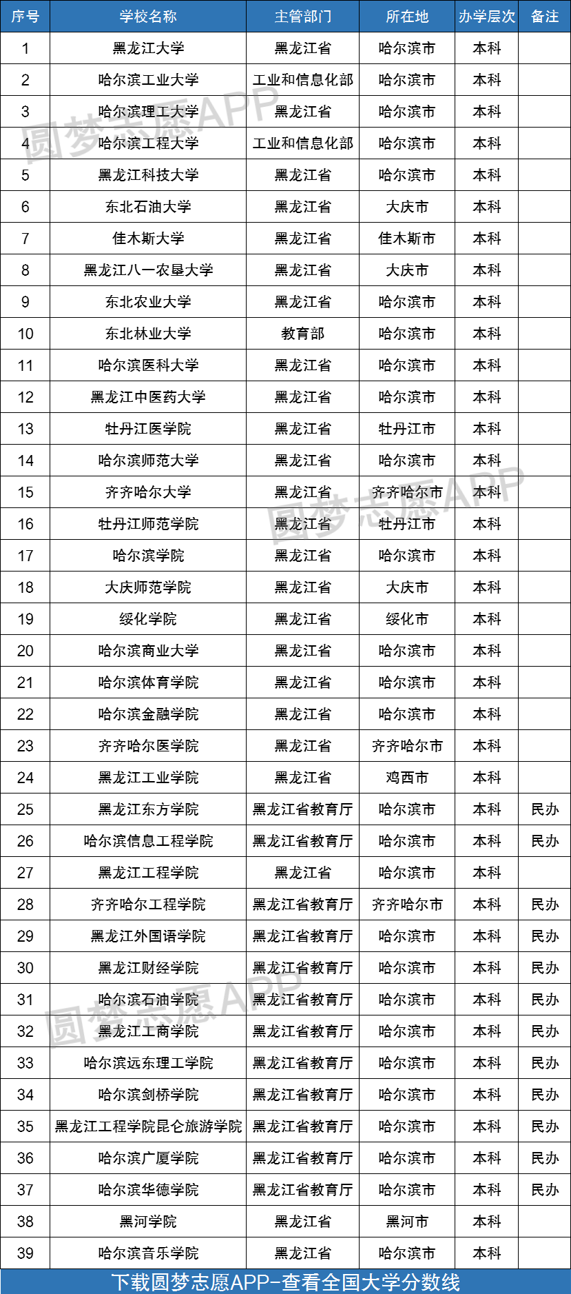 下图为黑龙江省所有本科大学名单一览表,供大家查阅: