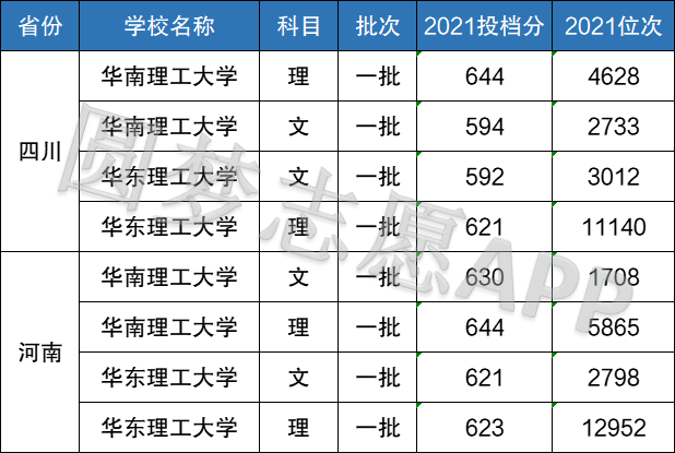 从录取分数来看,很明显华南理工大学要高于华东理工大学,主要原因是因为华南理工大学入选了985工程,因此对于生源的质量把控的较紧。