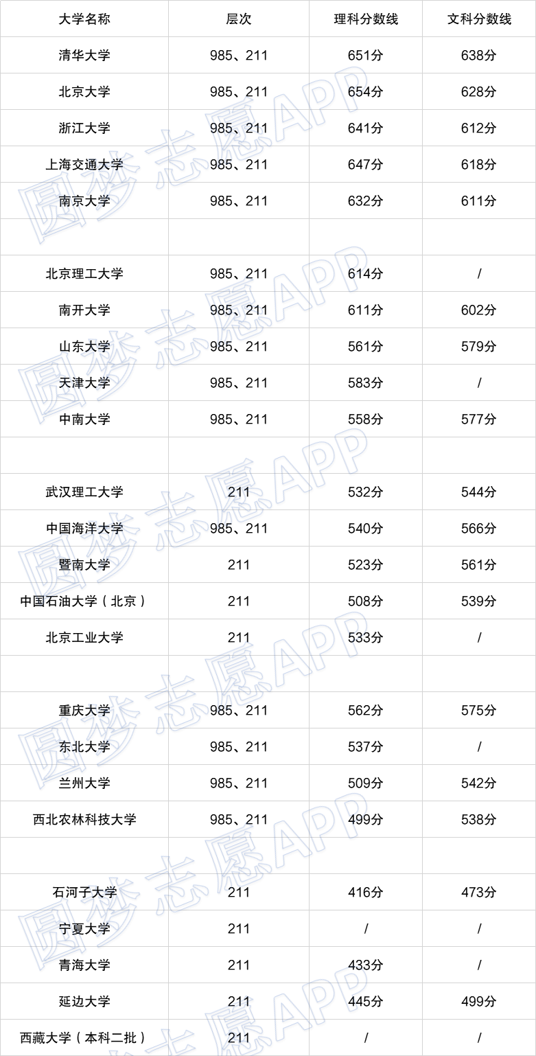注:新疆维吾尔自治区2021年的理科一本线为405分,文科一本线为466分。