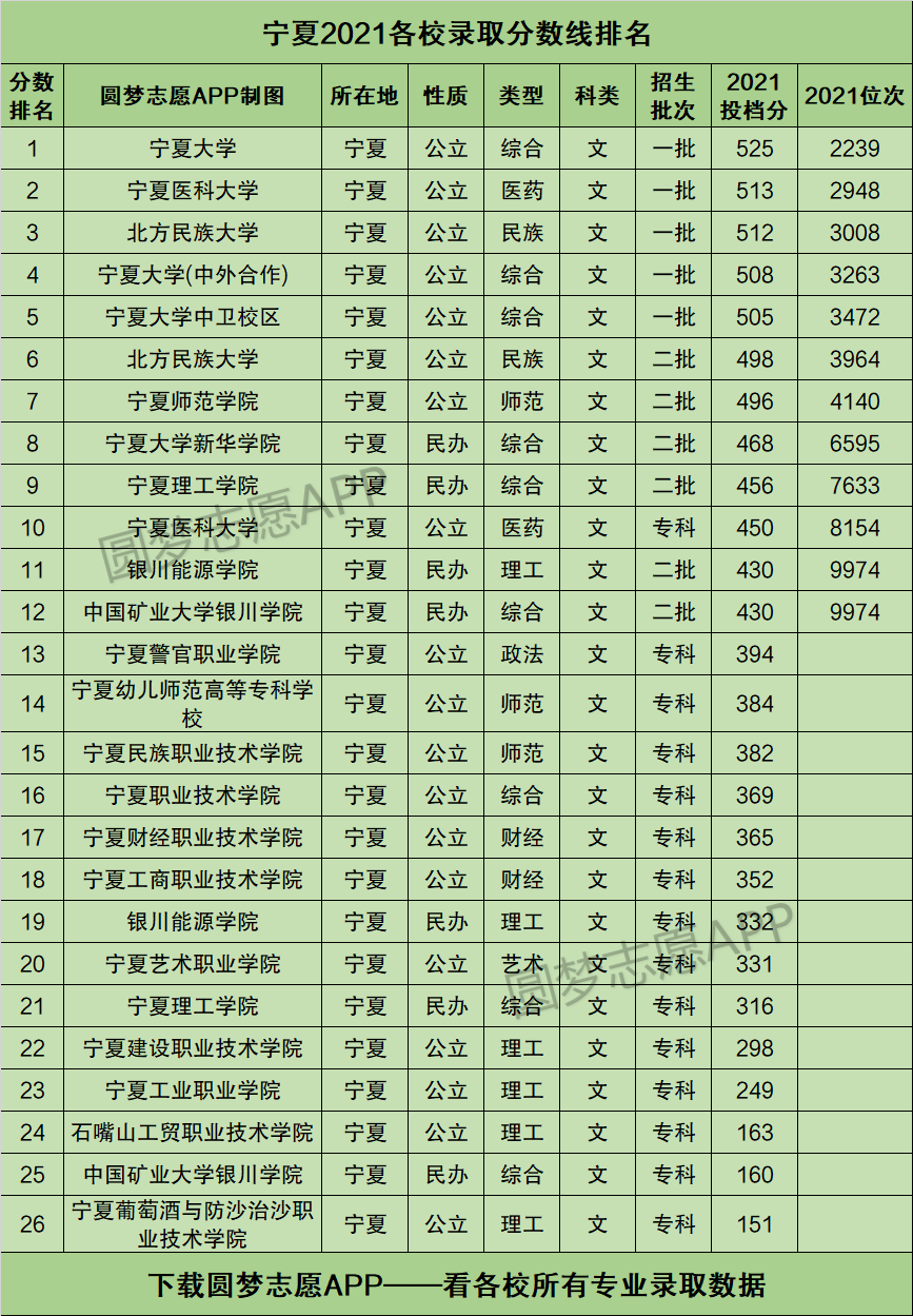 宁夏有哪些本科大学、高职专科院校?宁夏各大高校2021年在宁夏的最低录取分数线及位次排名是多少?本文将为大家奉上这份名单及数据资料,并且再附上2021年宁夏高考本科分数线汇总,供2022年的高三同学们参考!
