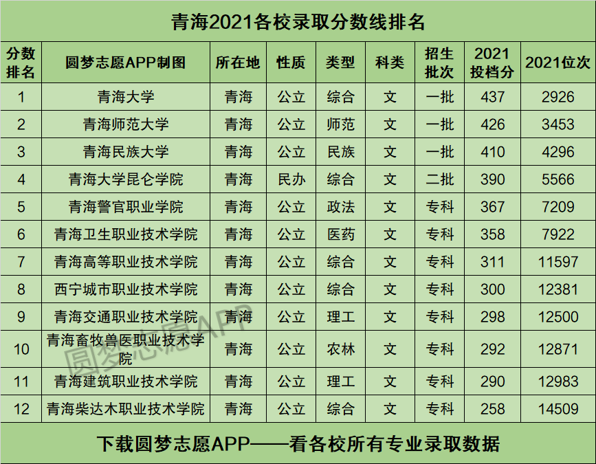 青海省内有哪些本科大学、高职专科院校?青海省内各大高校2021年在青海省的最低录取分数线及位次排名是多少?本文将为大家奉上这份名单及数据资料,并且再附上2021年青海高考本科分数线汇总,供2022年的高三同学们参考!