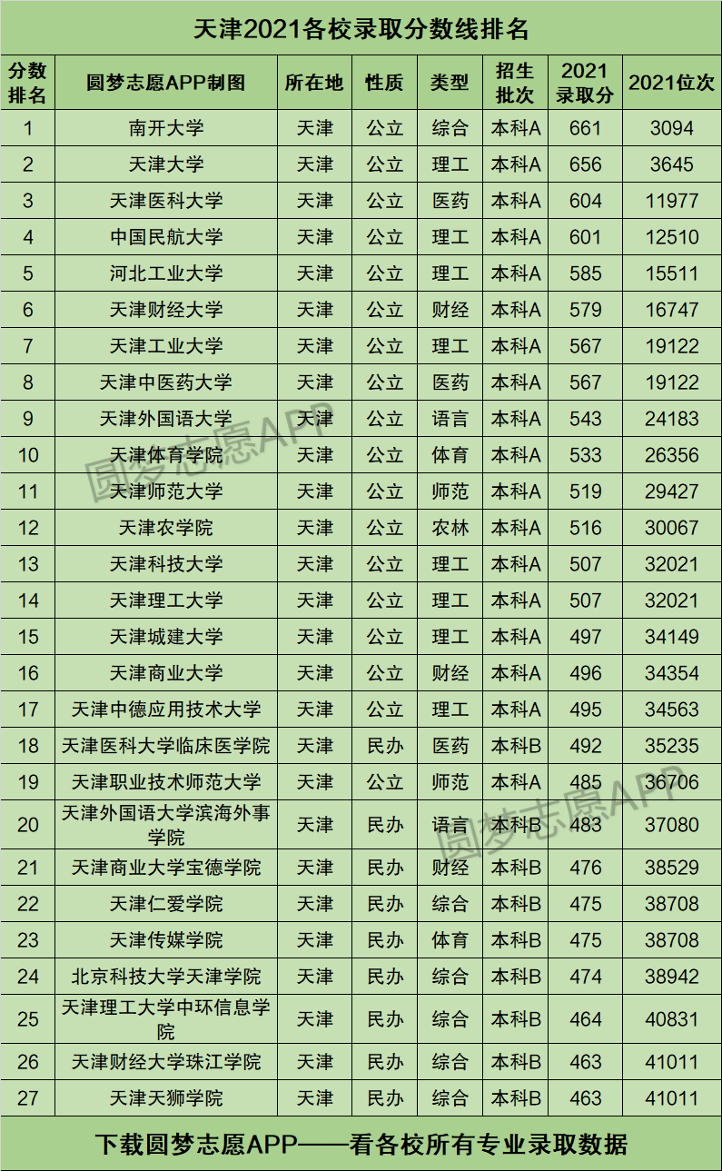 天津市内有哪些本科大学、高职专科院校?天津各大高校2021年在天津的最低录取分数线及位次排名是多少?本文将为大家奉上这份名单及数据资料,并且再附上2021年天津高考本科分数线汇总,供2022年的高三同学们参考!