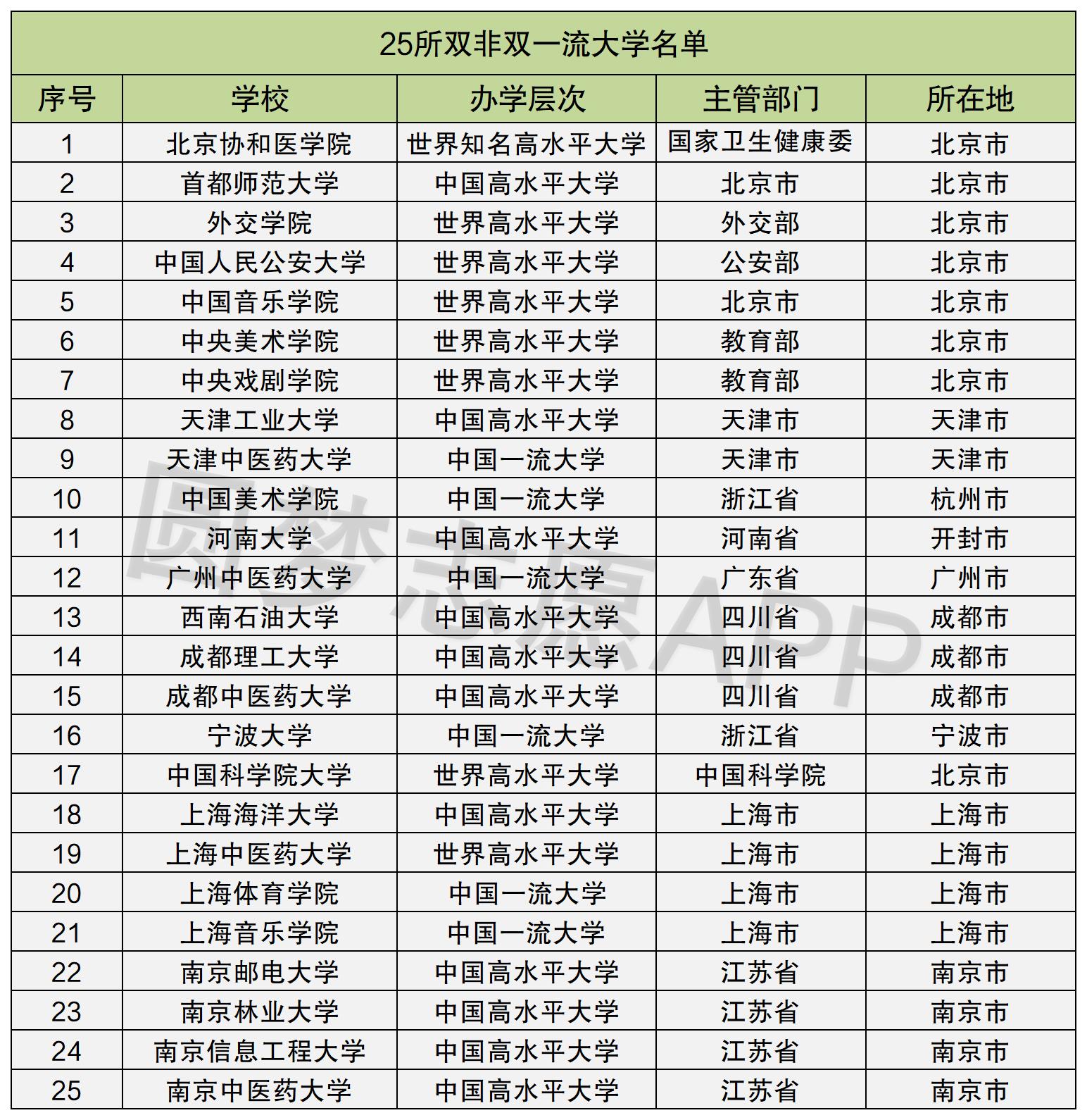 全国25所双非双一流大学不管是实力还是知名度都不弱,认可度自然也是不低的;其中以北京协和医学院和中国科学院大学最为知名。