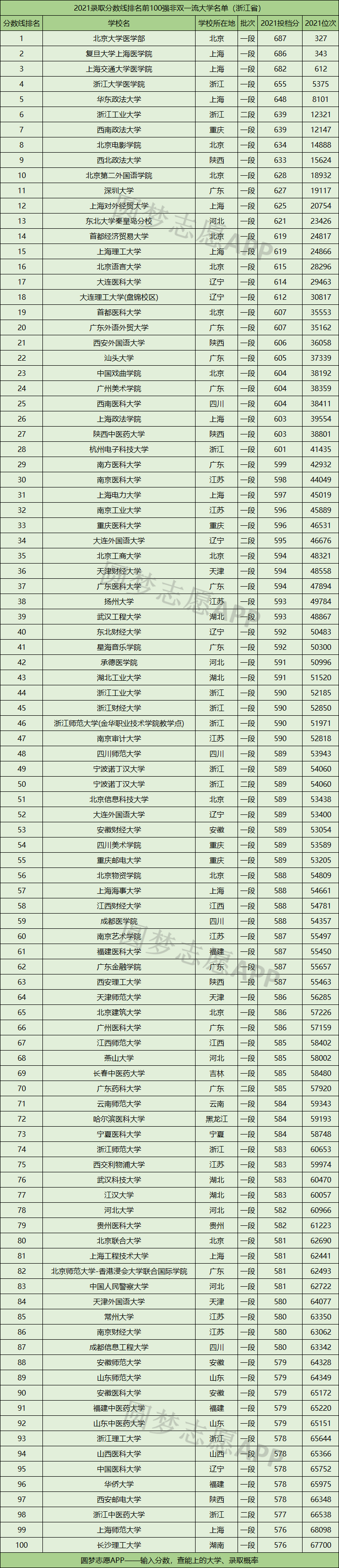 以浙江省为例,按照所有非双一流大学在浙江省2021年录取分数线从高到低排序,为大家整理了非双一流大学百强名单。
