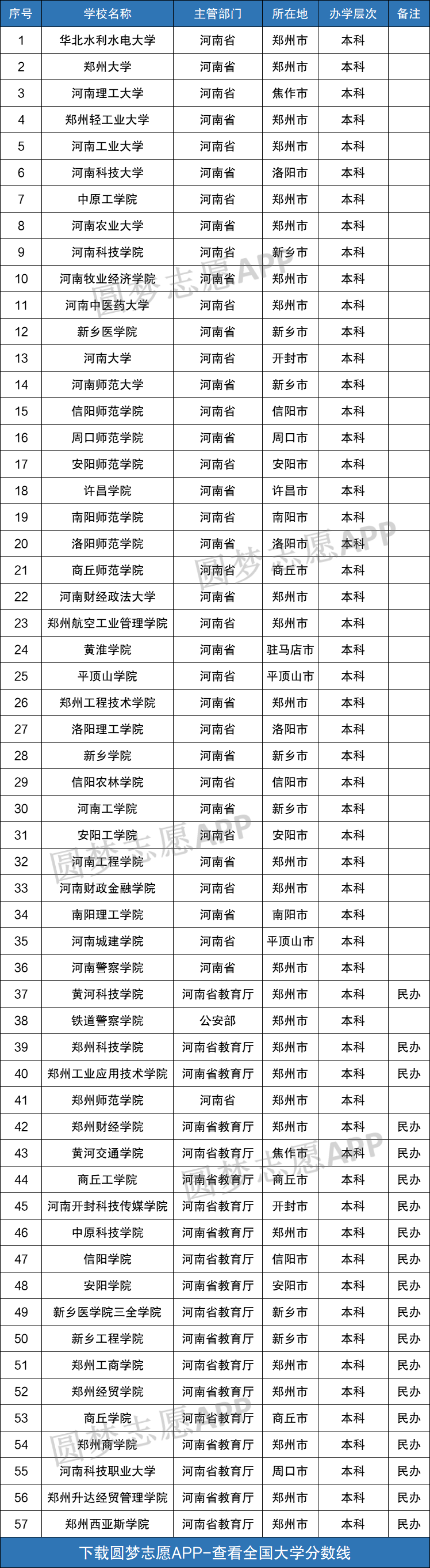 下图为河南省所有本科大学名单一览表,供大家查阅: