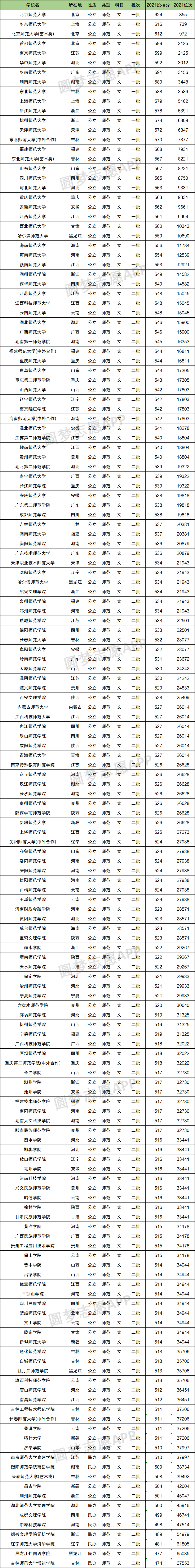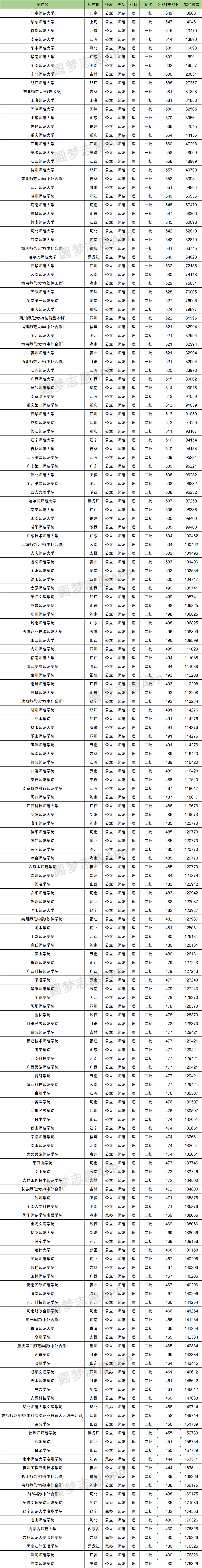 2021年大部分省市公布了各院校投档情况,由于数据较多,小编无法一一为大家整理出来。本文以四川省为例,为大家整理出了所有师范院校在四川省的文科、理科投档情况: