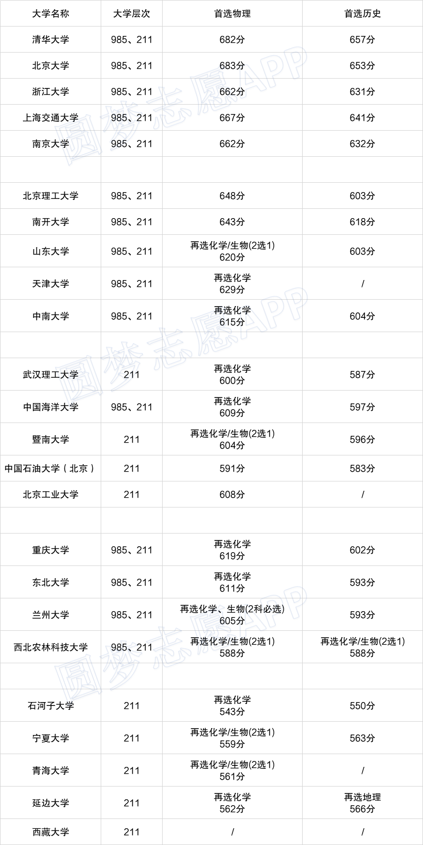 若想考取顶尖211大学,那么首选物理的分数得超过本科线239分,首选历史的分数应该超过本科线164分;要想考取中游211的话,首选物理的分数得超过本科线168分,首选历史的分数应该超过本科线116分;要想考取末流211的话,首选物理的分数得超过本科线120分,首选历史的分数得超过本科线83分。