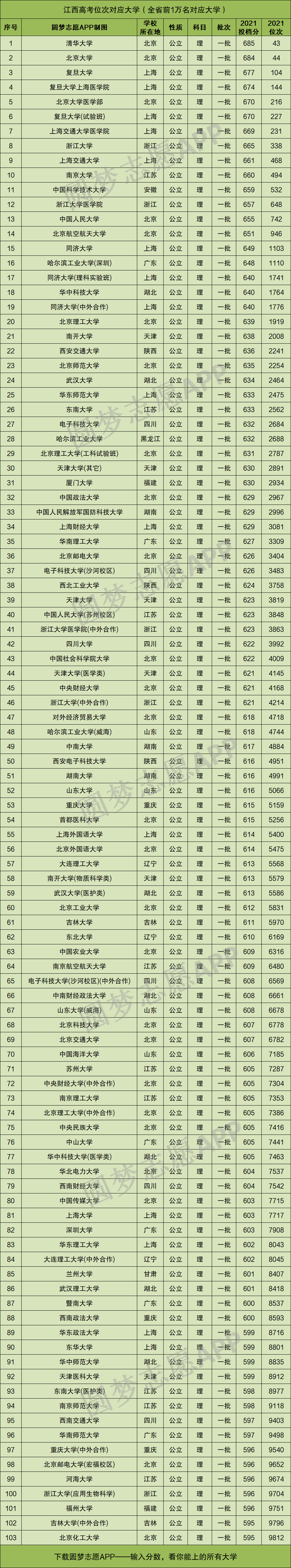 本文就将为大家奉上这份数据,为大家展示理科版本的“江西高考排名对应学校-江西高考位次对应大学名单”,供2022年江西省内的理科同学参考!