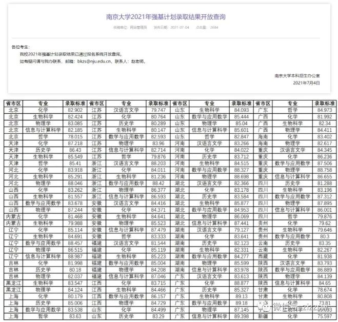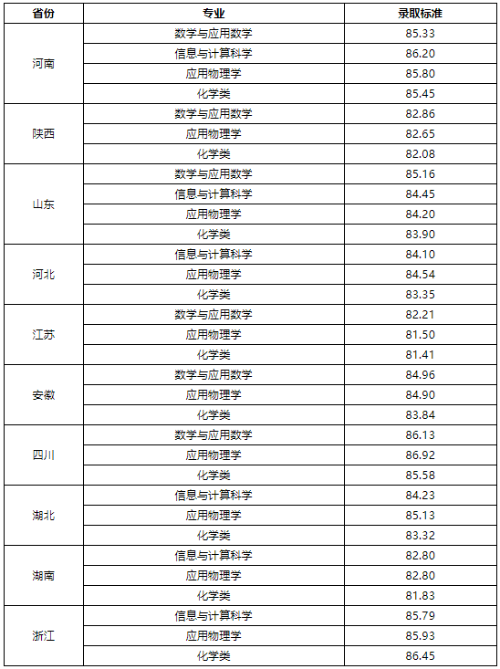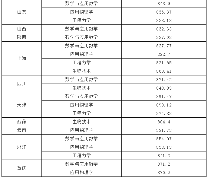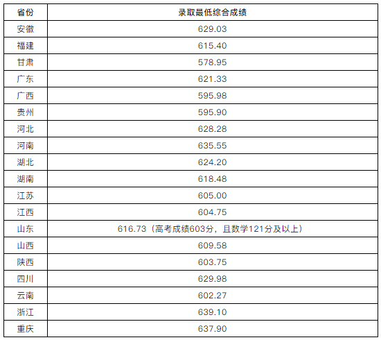 国防科技大学2021年强基计划7省份综合成绩录取线如下: