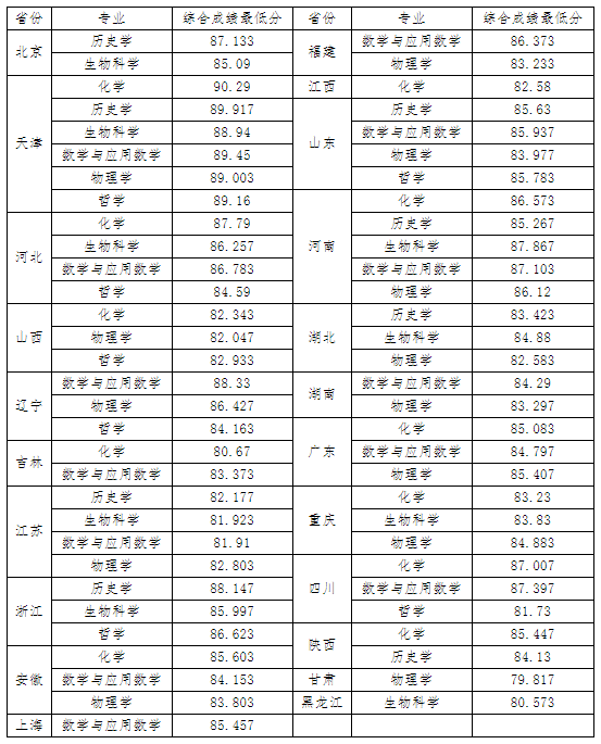 天津数学类-培养方案Ⅱ(信息与计算科学)综合成绩分数线为90.8417