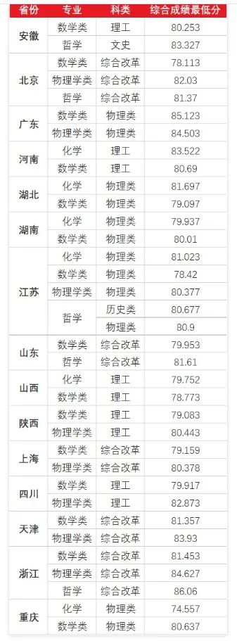 浙江物理学类-培养方案Ⅳ(天体物理学)综合成绩分数线为88.6100