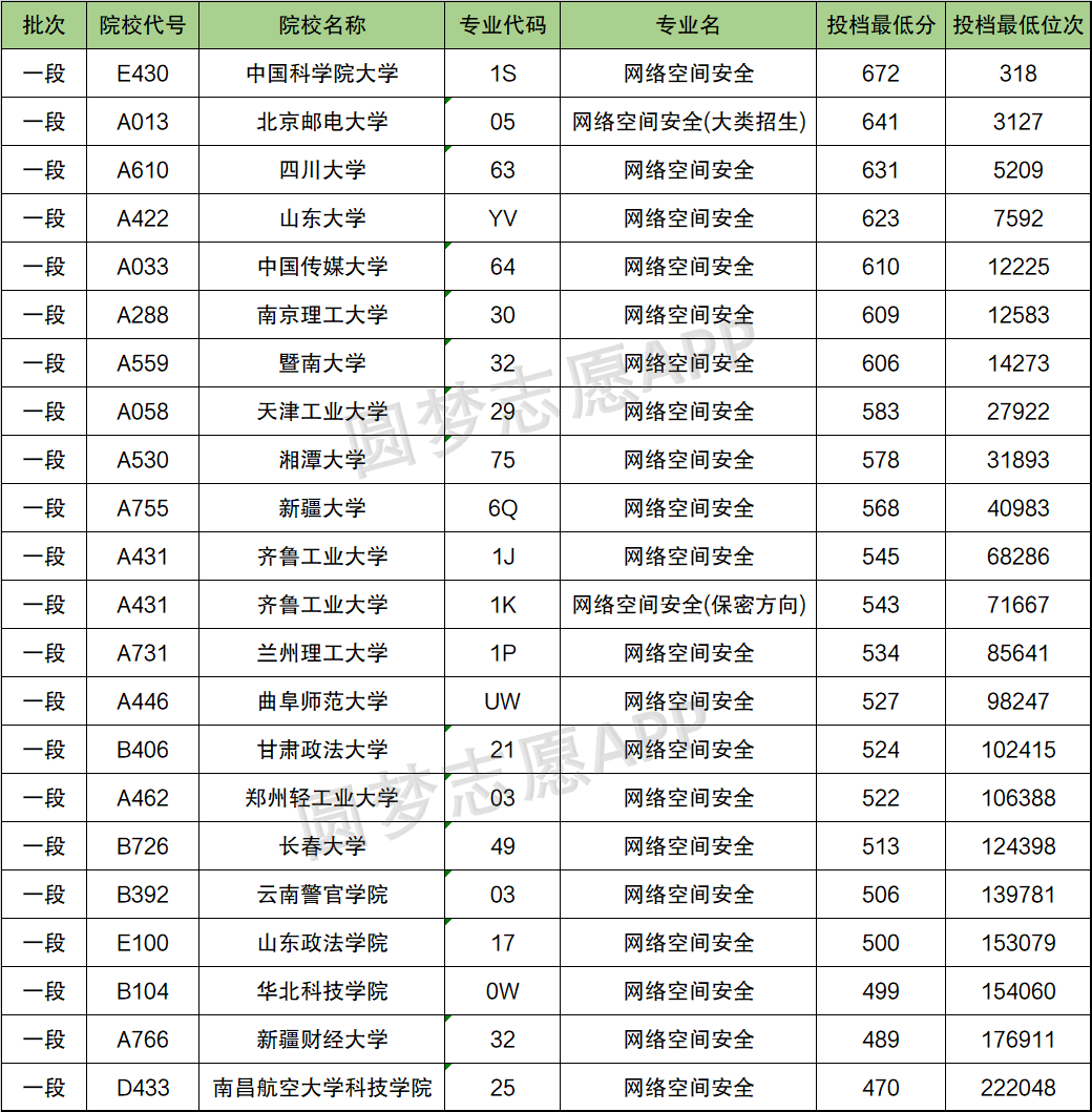 以下是根据2021年山东省教育考试院公布的招录数据,整理出的专业投档分及投档位次,其中中国科学院大学网络空间安全专业最低投档分为672分。如果大家想要了解更多大学网络空间安全专业的录取分,可以进行查询。