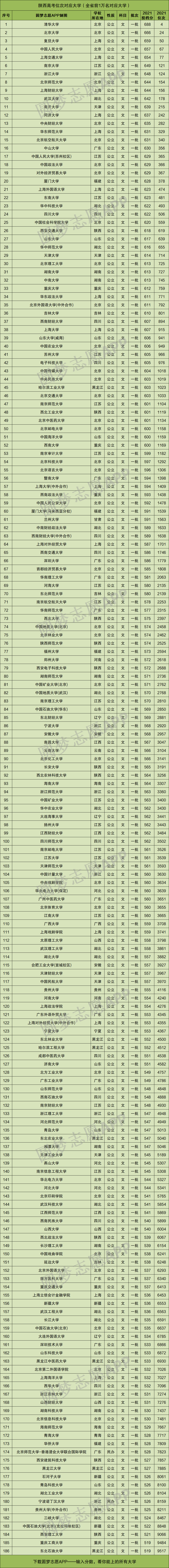 重要提示:由于本文篇幅有限,仅展示陕西文科高考位次在前1万名对应的大学名单和分数线,如果你想查看全国所有大学的录取位次及分数,请直接在中Excel表格查阅!
