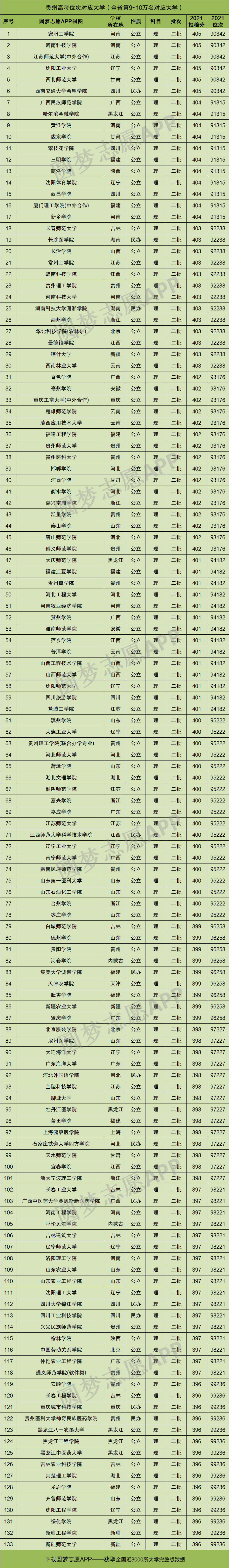 本文就将为大家奉上这份数据,为大家展示理科版本的“贵州高考排名对应大学-贵州高考位次对应学校名单”,供2022年贵州省内的理科同学参考!
