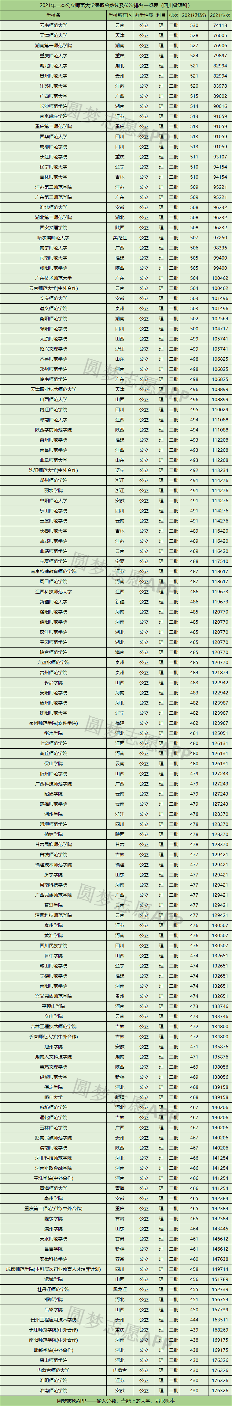 下面是2021年四川省理科二本公立师范大学录取分数线排名一览表: