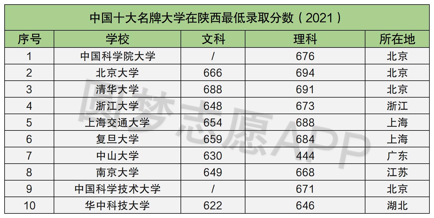 每个学校在不同省份的录取分数都不相同,这里小编为大家整理的是2021年这十大名牌大学在陕西省的最低录取分数,供大家参考;