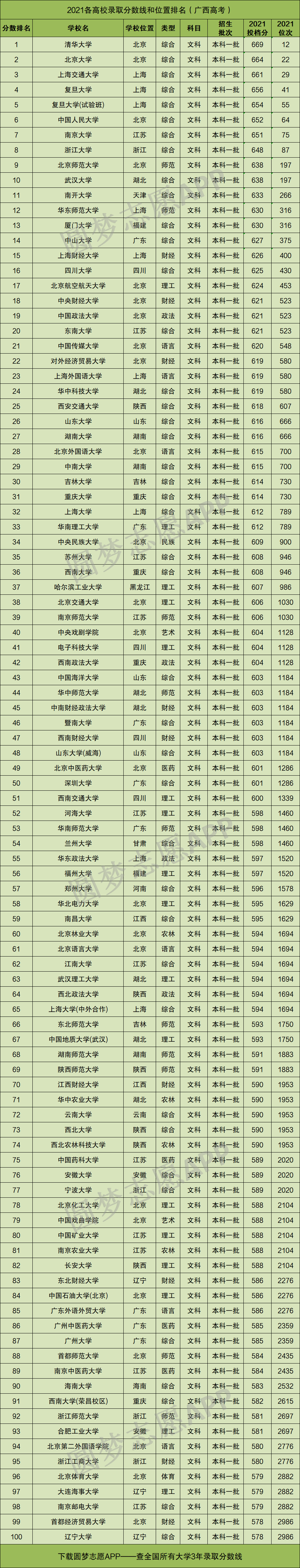 2021各高校在广西录取分数线和位置排名,是接下来这一年里无数广西省高三考生关注的重点。因为不少同学都非常好奇,2021年高考在广西省录取分数线最高的前100强大学是哪些?对于广西省的高考生来说,哪些省份的哪些大学最难考?那么,本文就将为大家奉上答案!