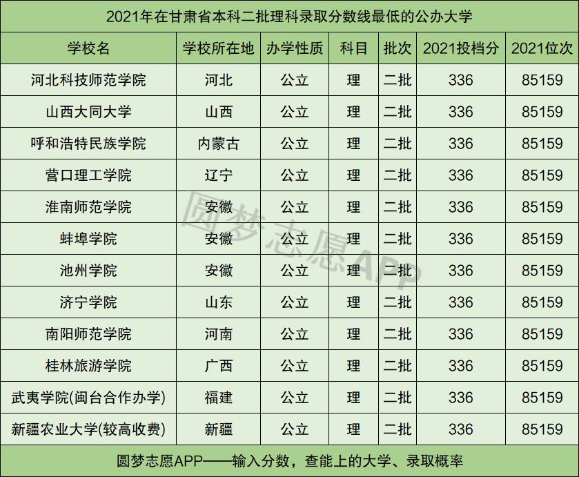 根据各省教育考试院公布的2021年招录数据,下面为大家整理了2021年在各省录取超低分的二本公办大学如下: