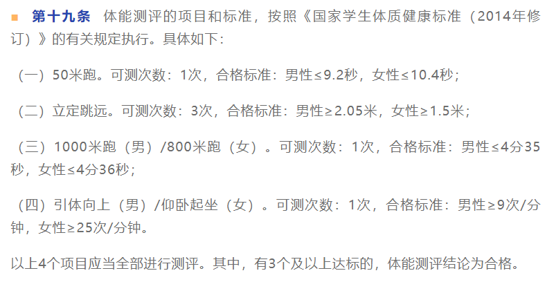 因警察的特殊性,考生还需具备一定的体能,因此学校一般会对面试成绩做相关要求。其中大部分警校的面试都是体能测试,如立定跳远、短跑等。