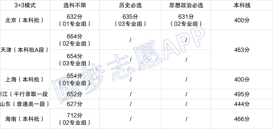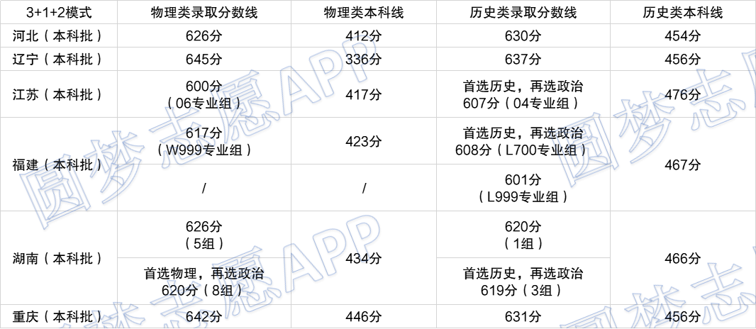 (注:下表展示的是各省在不同选科情况下的录取分数线)