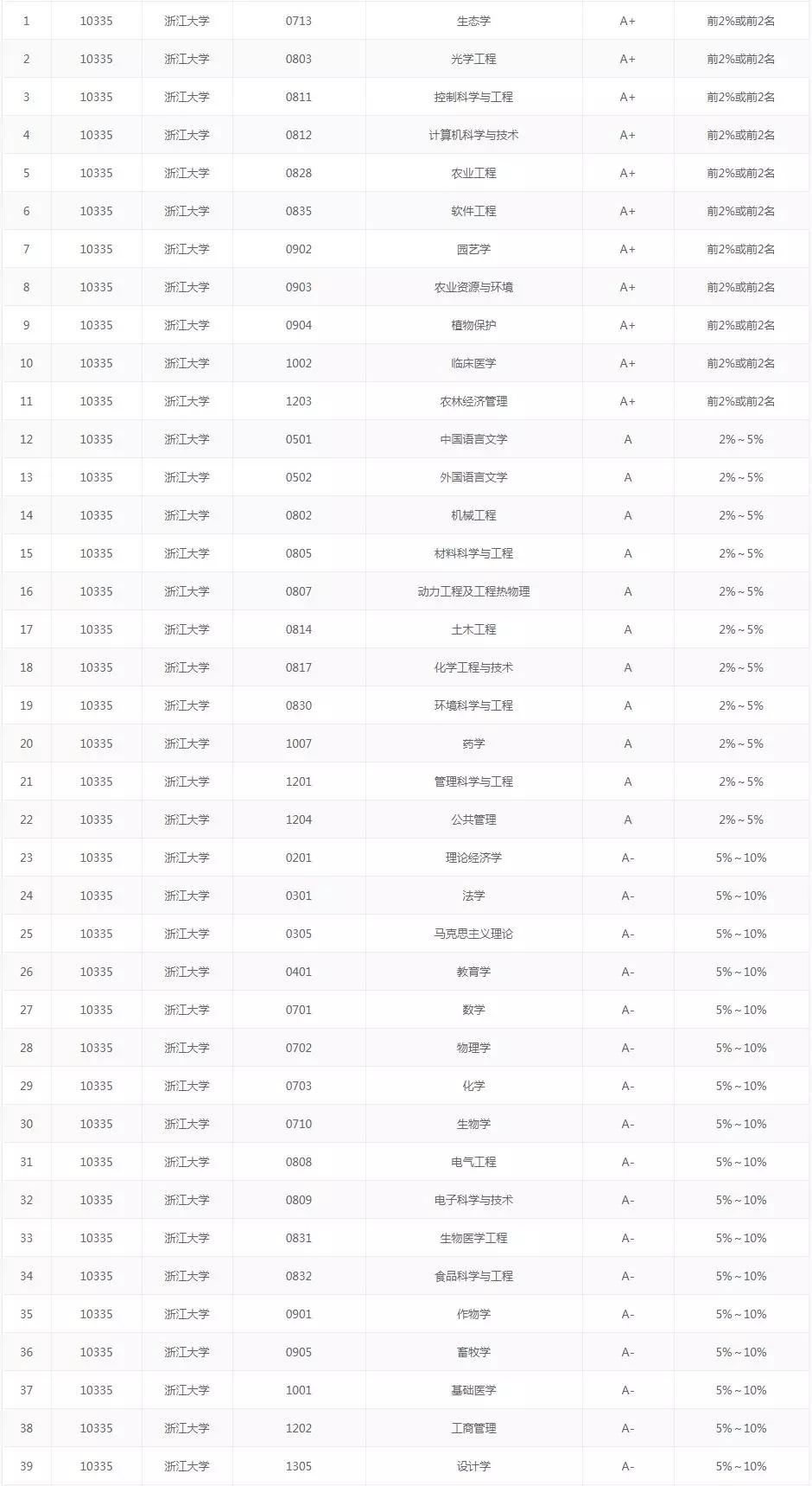 在全国第四轮学科评估中,浙江大学有39个一级学科评为A类,其中像生态学、光学工程等11个学科位列A+行列,学科排名位于全国前2%。浙江大学的实力可见一斑。