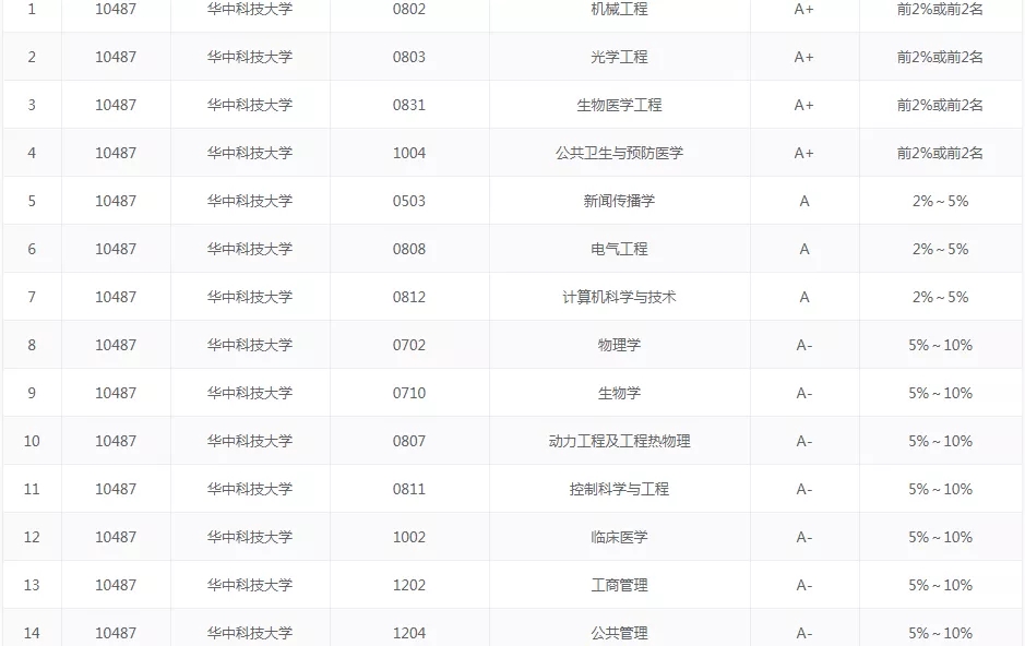 在全国第四轮学科评估中,华中科技大学有14个一级学科位列A类,其中机械工程、光学工程、生物医学工程、公共卫生与预防医学这四个一级学科位列A+行列,学科排名位于全国前2%。总体来说,华中科技大学的实力不容小觑。
