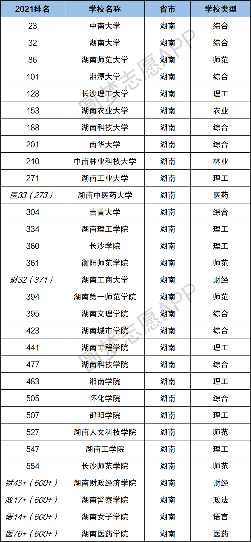 一、2021年湖南省高校排名