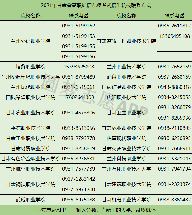 根据甘肃省教育考试院公布的《2021年甘肃省高等职业教育扩招专项报名考试工作公告》:
