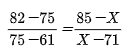 例如:甲同学地理考了75分,那么他在赋分区间内位于B等级,假设将本次考试分数在82~61范围划为原始区间,那么可以根据上式公式进行转换: