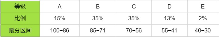 2.各等级比例赋分区间如下:
