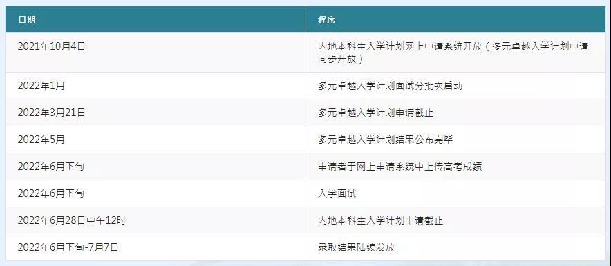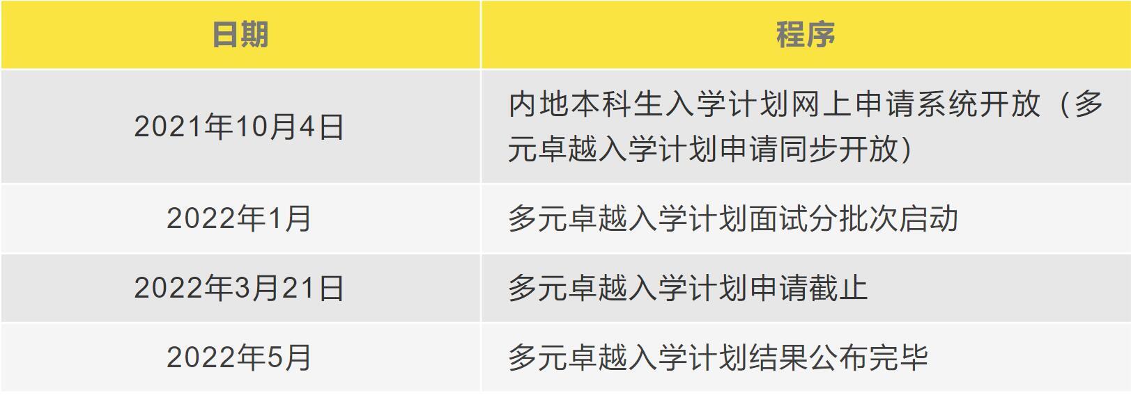 *如申请者于高考前未能参加任何轮次的多元卓越入学面试,则视为自动放弃此计划资格,且无法获得入学优惠。