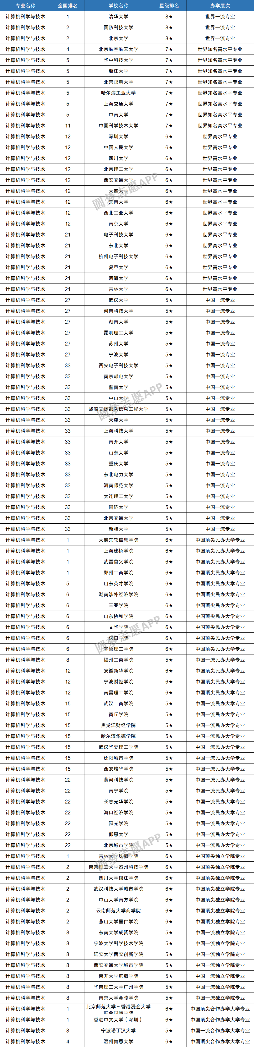 校友会2021计算机科学与技术专业排名