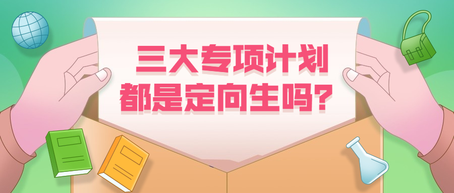 国家出台的三大专项计划指国家专项计划、高校专项计划和地方专项计划,目的都是为了让更多的学生能够有上大学的机会。那么三大专项计划都是定向生吗?三大专项计划多少分能报?三大专项计划可以一起报考吗?本期小编将详细为大家解答。