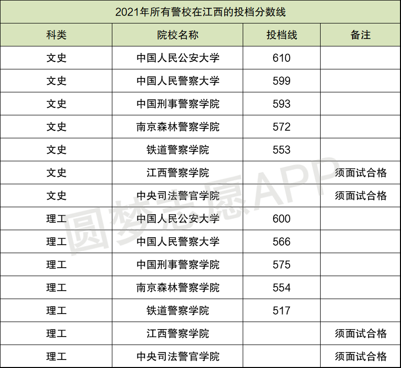 同时小编也为大家整理出2021年所有警校在江西的投档分数线,供大家参考。