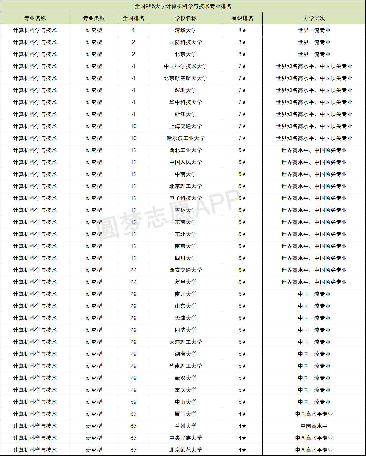 一、全国985大学计算机专业排名