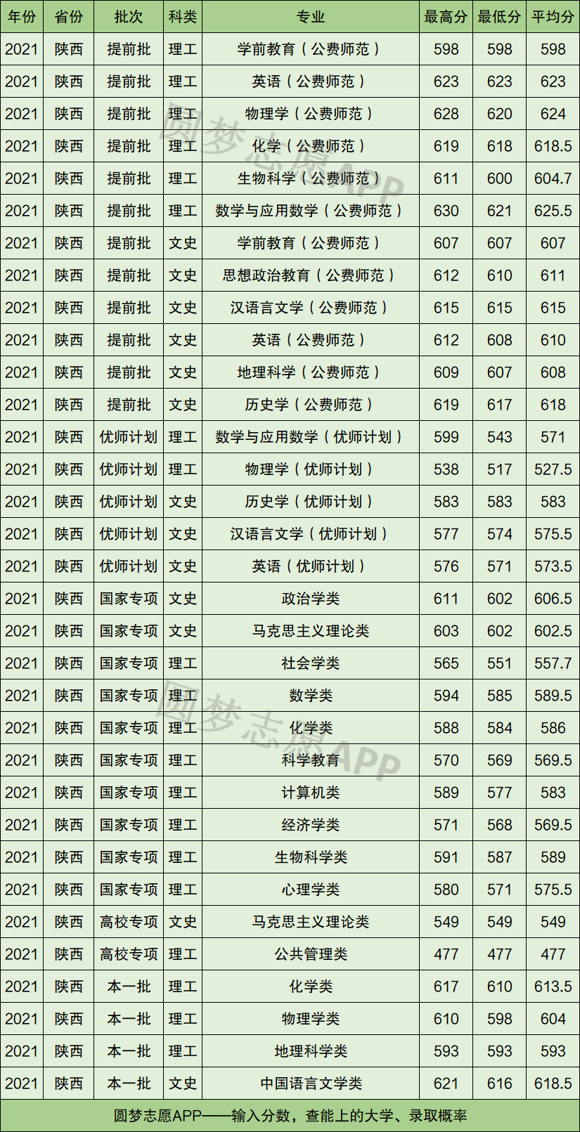 注:以下数据均来自陕西省教育考试院,想了解其他省份六所免费师范大学录取分数线的考生,可。APP数据全部来源于学校官网,考试院,准确无误,安全放心,手机各大应用市场均可。