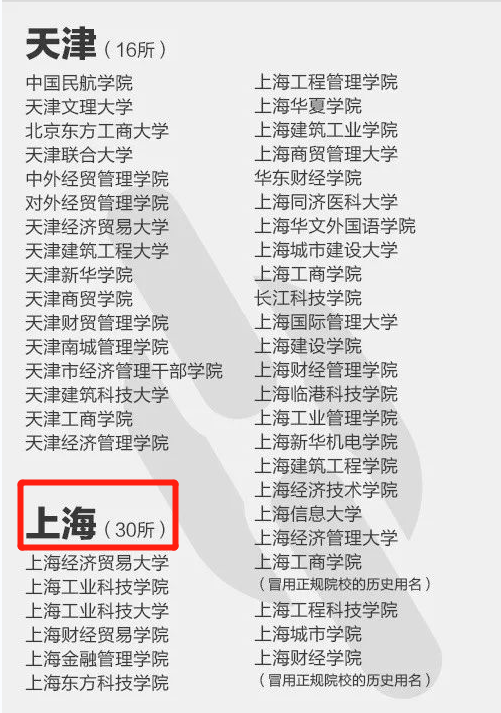 上海野鸡大学一共有30所,以下是人民日报最新公布的是上海野鸡大学名单: